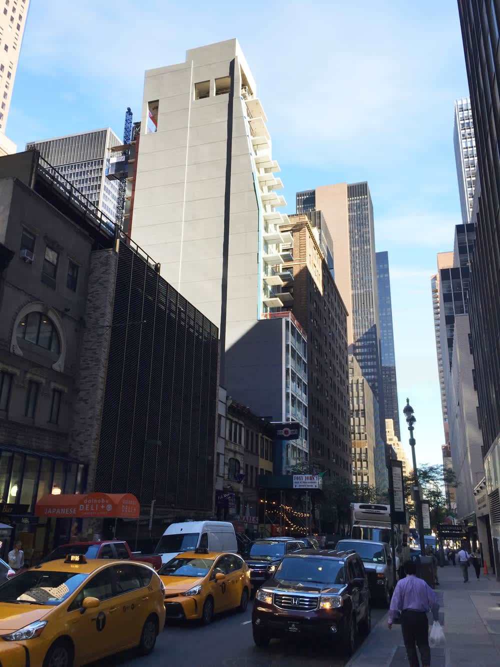 ​​​​​​​Located at 145 East 47th Street, a new 22-story hotel has been completed, featuring 93 rooms, as previously reported by Curbed. The building stands as a striking addition to the area. The design showcases a narrow profile with setbacks beginning after the ninth floor, culminating in a residential penthouse on the 20th story. This mixed-use concept, combining hotel accommodations with a single penthouse residence, offers a unique architectural approach to the neighborhood.