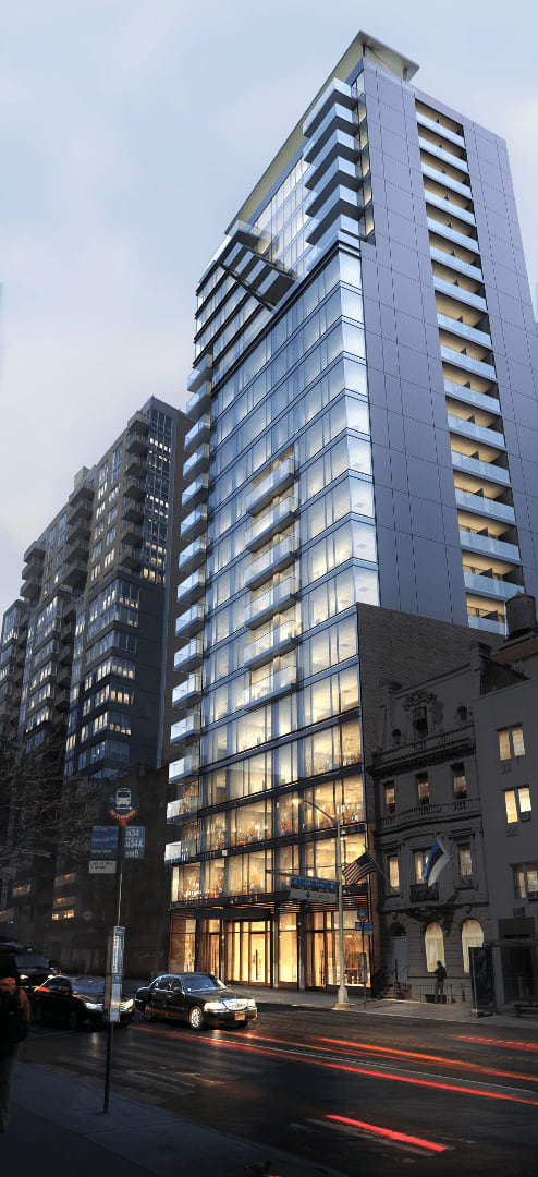 25-story residential building located at 237 East 34th Street in Murray Hill, on the East Side of Manhattan. The building will rise 210 feet above ground and contain 107 residential apartments. Zoning regulations and design specifics have led to the inclusion of balconies on the front and east sides of the building. The first-floor lobby is connected with both open and enclosed recreation areas on the second floor, and there is an outdoor recreation area on the 23rd floor. The building will also house 6,282 square feet of commercial space on the first floor and in the cellar, along with 7,002 square feet of community facility space. The building is situated conveniently near the 33rd Street stop on the 6 train and close to the Queens Midtown Tunnel.