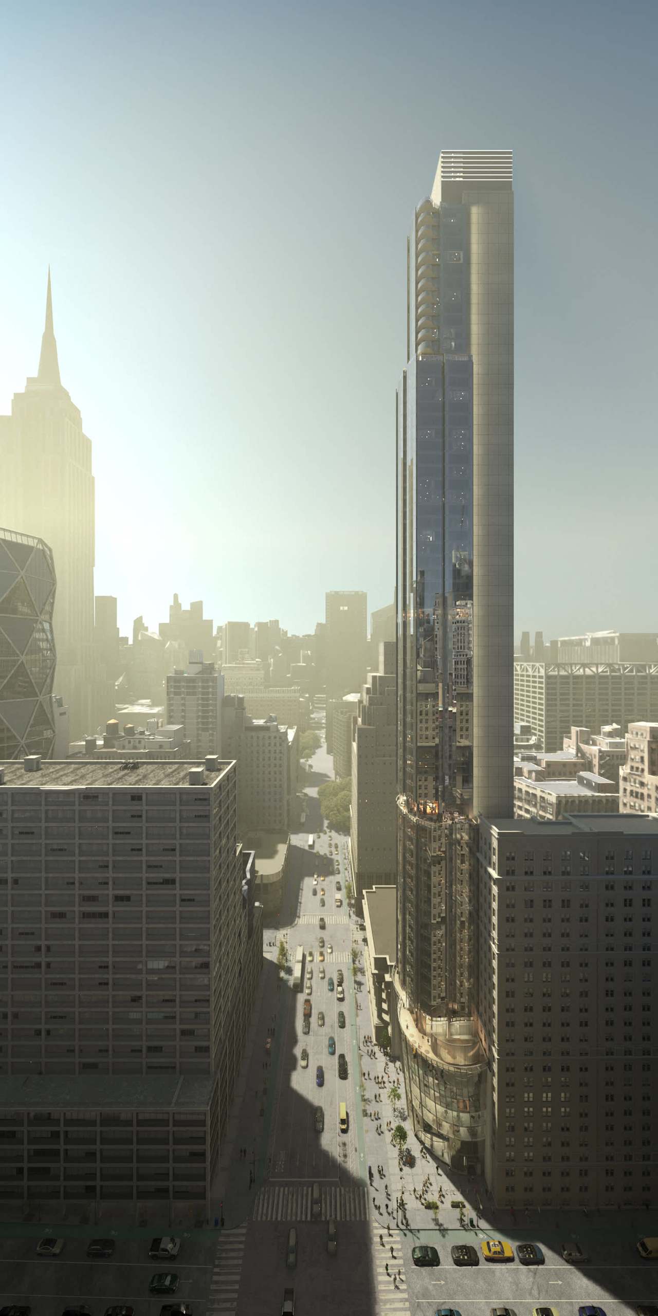 Located in Garment district of Midtown Manhattan, right next to Haier Building and three blocks away from Byrant Park, this 73-story mix-used skyscraper is currently under construction with an anticipated completion in 2026. The building’s lot size is 100’ x 98’-9” ft and the structure’s height 785 ft. The tower will have 311 residential units with some commercial space and two cellar floors.